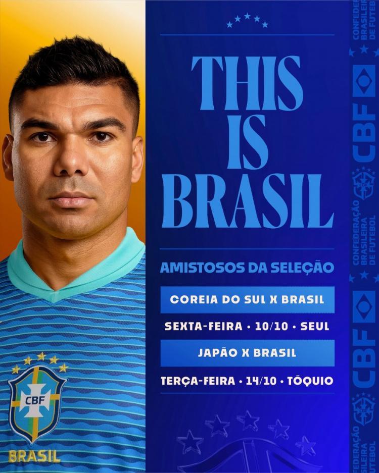 巴西足协发布公告,确认10月份的友谊赛对手,巴西10月10日在首尔对阵韩国、10月14日在东京对阵日本。