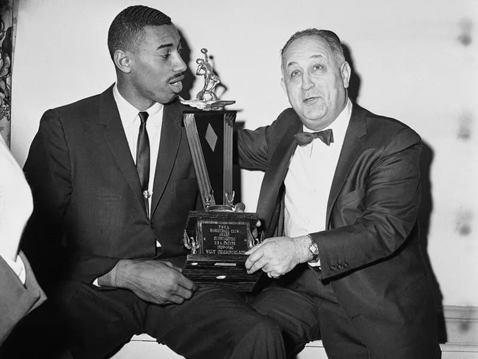 1960年的Eddie Gottlieb(右)与Wilt Chamberlain