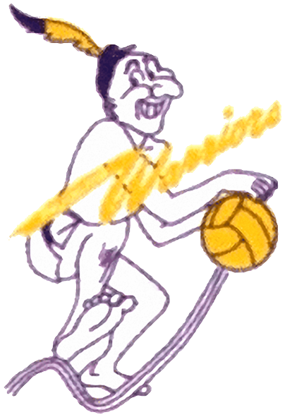 这版队徽具有早期NBA队徽的基本特质:画面粗糙,与职业篮球的意象相去甚远。这位球员头插黄黑色羽毛,赤着双脚,这都与篮球运动格格不入。一种说法是黄色羽毛是用来表示并强化“勇士”的身份的象征物——这不成了印第安人部落特征了?不知道原先Sphas队的犹太人们看了作何感想。