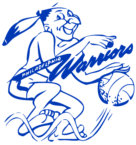 配色从原先的紫黄改为蓝白,线条变得简洁。“Warriors”字样得到加重突出。在字母“W”起笔的长横上,以白色小字印着城市名“PHILADELPHIA”,是这版设计的一大亮点。另外,拍球的轨迹被画成“W”的字样也暗指了队名。