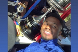 法蒂此役担任替补没有出场,当地时间第二天早上,他在社交媒体上转发与拉菲尼亚、莱万的合照,身边摆着冠军奖杯,配文:“早上好。”
